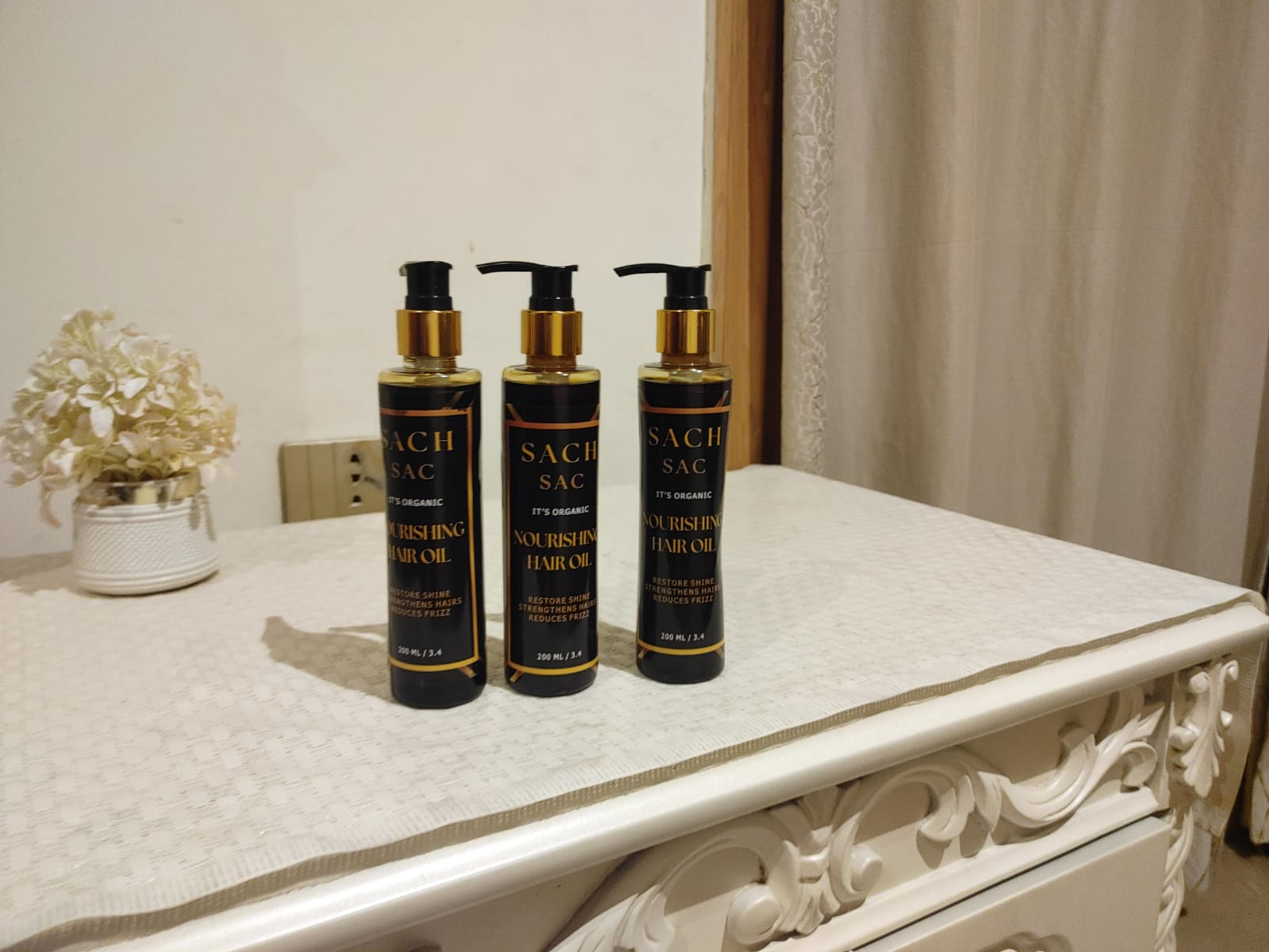 Sach Hair Oil is a natural herbal formula that helps reduce hair fall, strengthens hair roots, and promotes longer, thicker, and shinier hair. Regular use nourishes the scalp and helps control dandruff.